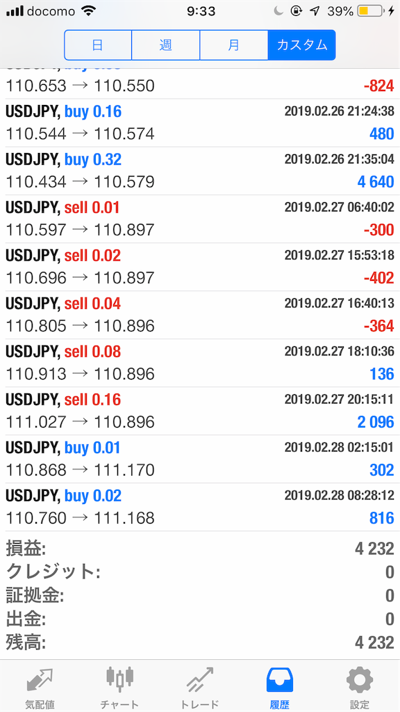 2018年12月の半ばから今日が3月なので、大体月平均でいきますと5万円位の利益がでています。