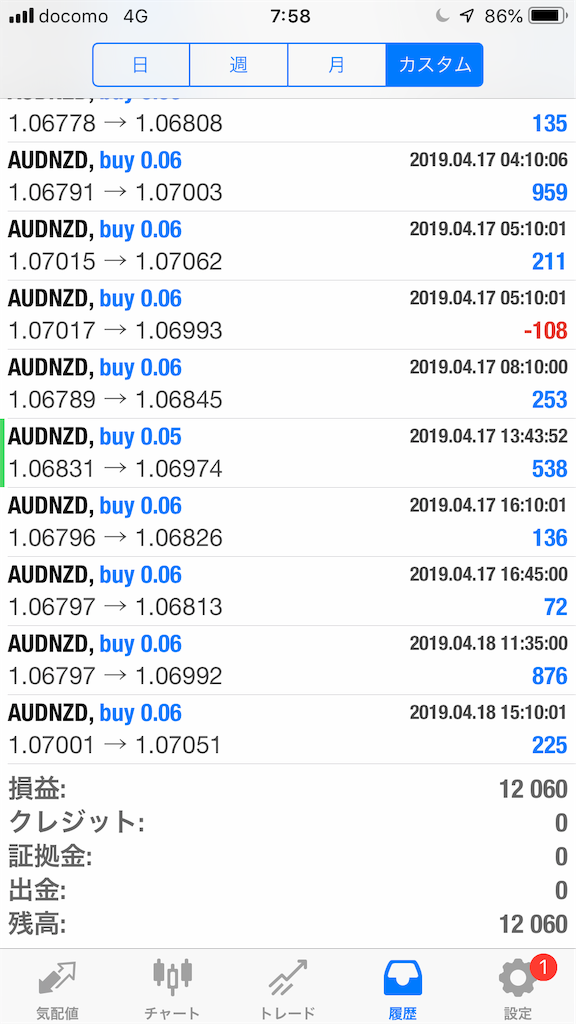 今週はロットを上げたのもありますが、決済するわするわでAUDNZDが上がりまくっていただきプラス決済が続きました。